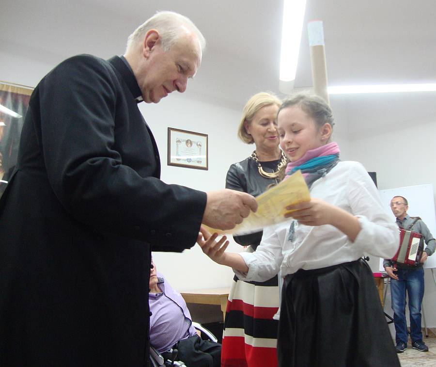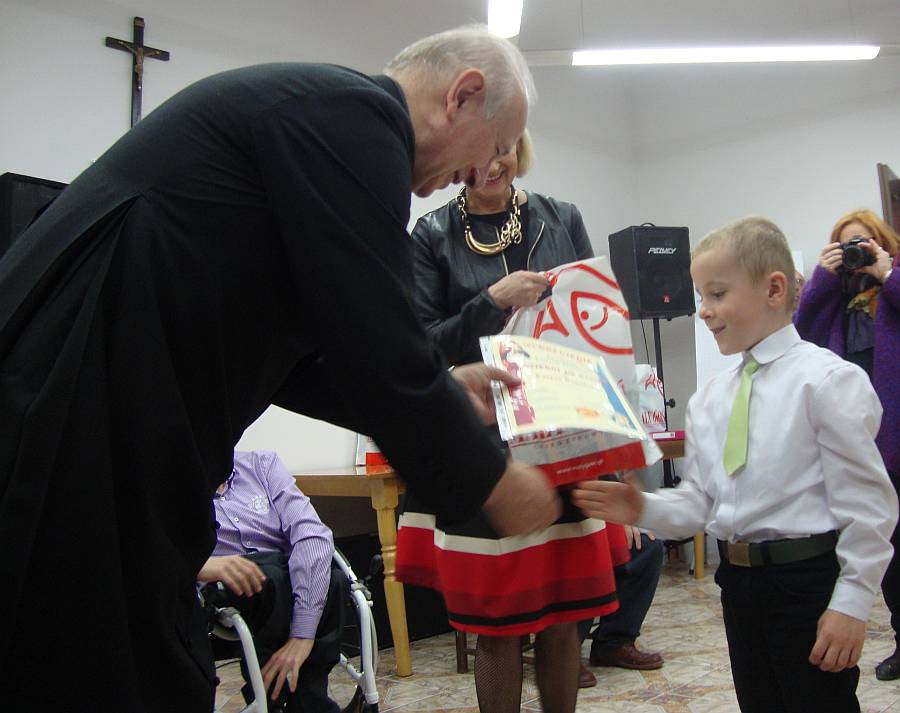 - Dzieci są bardzo wyczulone na sprawę pomocy, cierpienia, choroby, ubóstwa i ukazują to wszystko w pracach plastycznych, a jednocześnie wskazują co możemy konkretnie zrobić dla innych - mówił o pracach konkursowych ks. Dariusz Frydrych, który wraz z Ewą Majcher koordynował konkurs plastyczny.