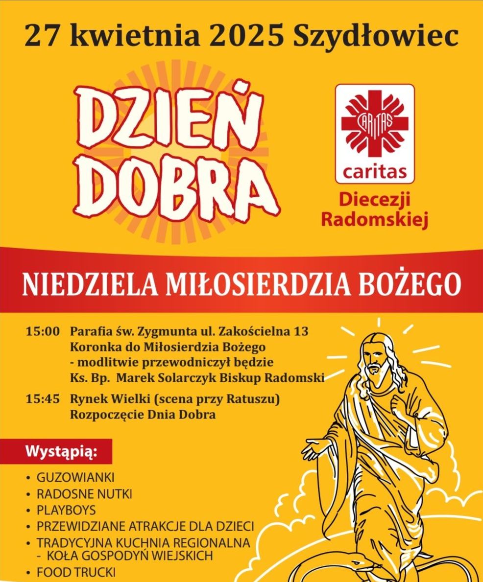 Caritas Diecezji Radomskiej zaprasza na obchody Dnia Dobra, który odbędzie się w najbliższą niedzielę, 27 kwietnia w Szydłowcu.