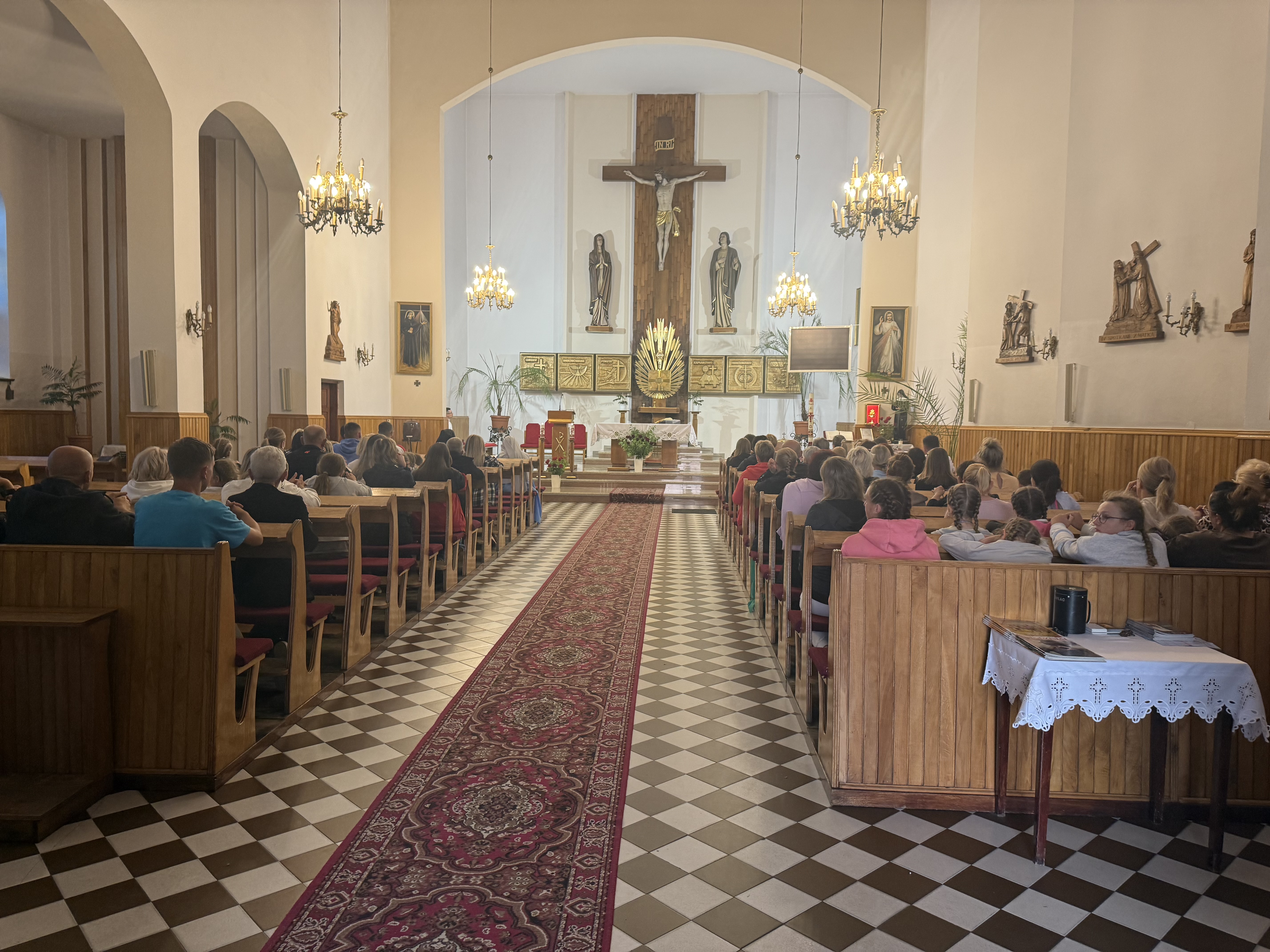 Na wieczorną modlitwę pielgrzymi przynieśli do miejscowej świątyni intencje składane z nadzieją orędownictwa za nimi św. Rity i pielgrzymkowego ducha wspólnoty. Powitani zostali przez Księdza Proboszcza, dbającego o rozwój kultu św. Rity z Cascii, potężnej włoskiej patronki od spraw beznadziejnych, która czczona jest w relikwiach w miejscowej świątyni od grudnia 2023 r. Prośby i podziękowania zostawione przy figurze św. Rity, zostaną wypowiedziane podczas najbliższego nabożeństwa do tej świętej