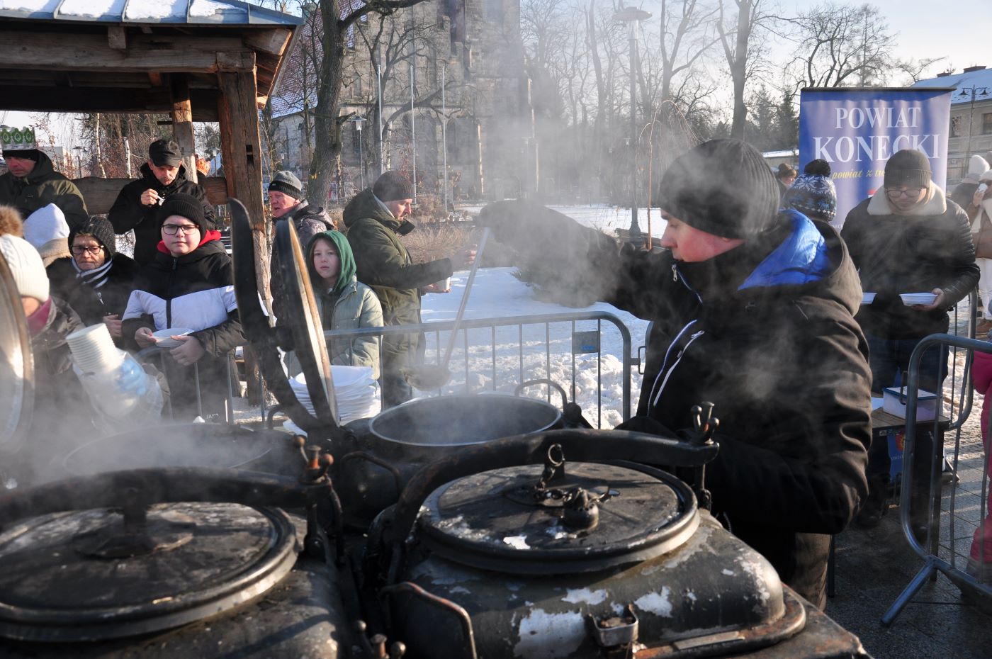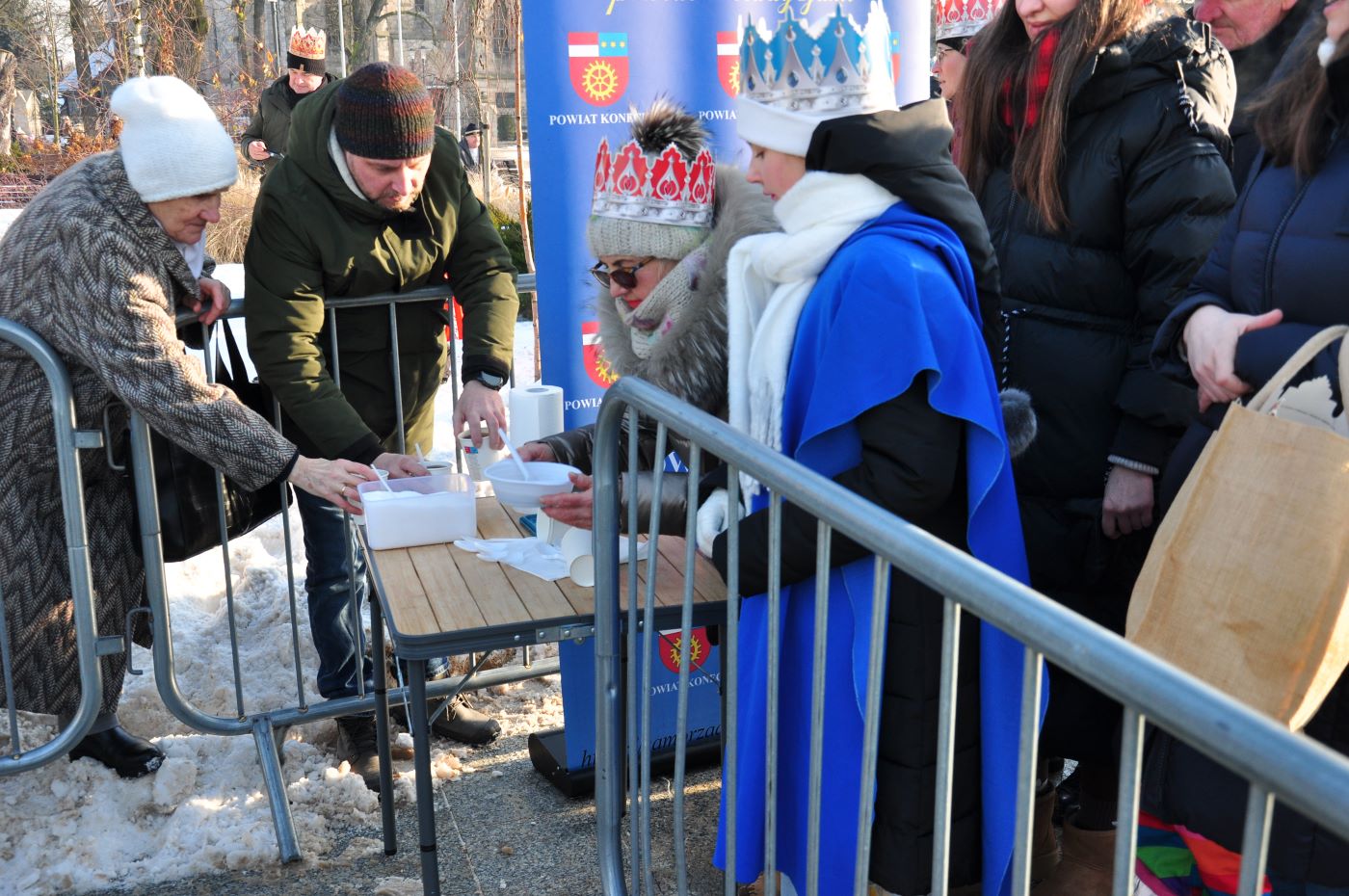 Ulicami Końskich już po raz dziesiąty przeszedł Orszak Trzech Króli. Najpierw w trzech koneckich parafiach o godzinie 11 odprawione zostały Msze święte, po których trzy mniejsze orszaki wyruszyły na ulice miasta. Spotkały się one na koneckim rynku, gdzie królowie wspólnie oddali hołd Dzieciątku. - Chcemy przez ten Orszak powiedzieć wszystkim, że Pan Jezus się narodził, że Pan Jezus jest dla nas Panem - mówi ks. Tomasz Janicki, proboszcz parafii Matki Bożej Nieustającej Pomocy w Końskich. W koneckim Orszaku jak co roku licznie wzięli udział okoliczni mieszkańcy. - W ten sposób manifestujemy swoją wiarę. Czujemy się jednością, rodziną. Jesteśmy razem - mówili. Na rynku w Końskich uczestnicy Orszaku Trzech Króli mogli obejrzeć jasełka w wykonaniu uczniów ze Stadnickiej Woli oraz posłuchać kolęd wykonaniu scholi Mikołajki z koneckiej kolegiaty i scholi z parafii Matki Bożej Nieustającej Pomocy. Nie zabrakło także gorącej zupy, a także kawy i herbaty.