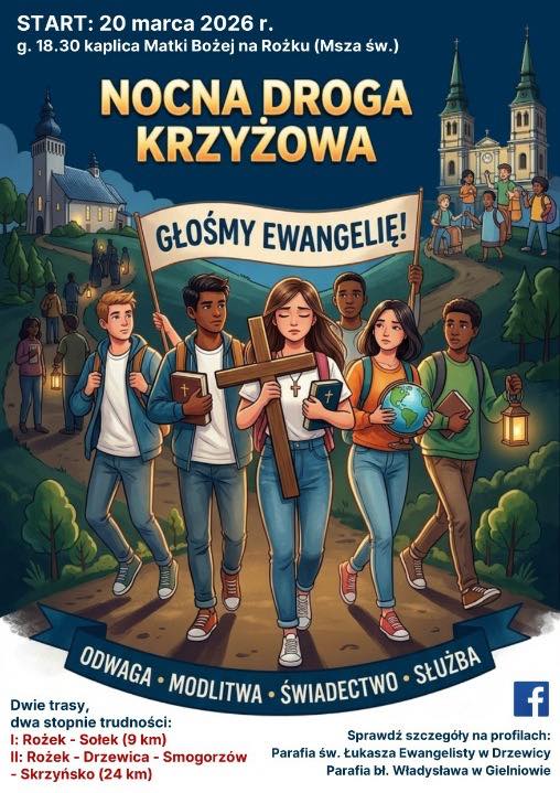 Nocne Drogi Krzyżowe wyruszą w piątek z kolejnych miejscowości regionu. Na takie wydarzenie zaprasza m.in. parafia w Drzewicy. Proboszcz ks. Adam Płuciennik wyjaśnia, że jej uczestnicy spotkają się Mszy świętej w kaplicy na Rożku o godzinie 18.30. Potem wyruszą jedną z dwóch tras: do Sołku lub Skrzyńska.