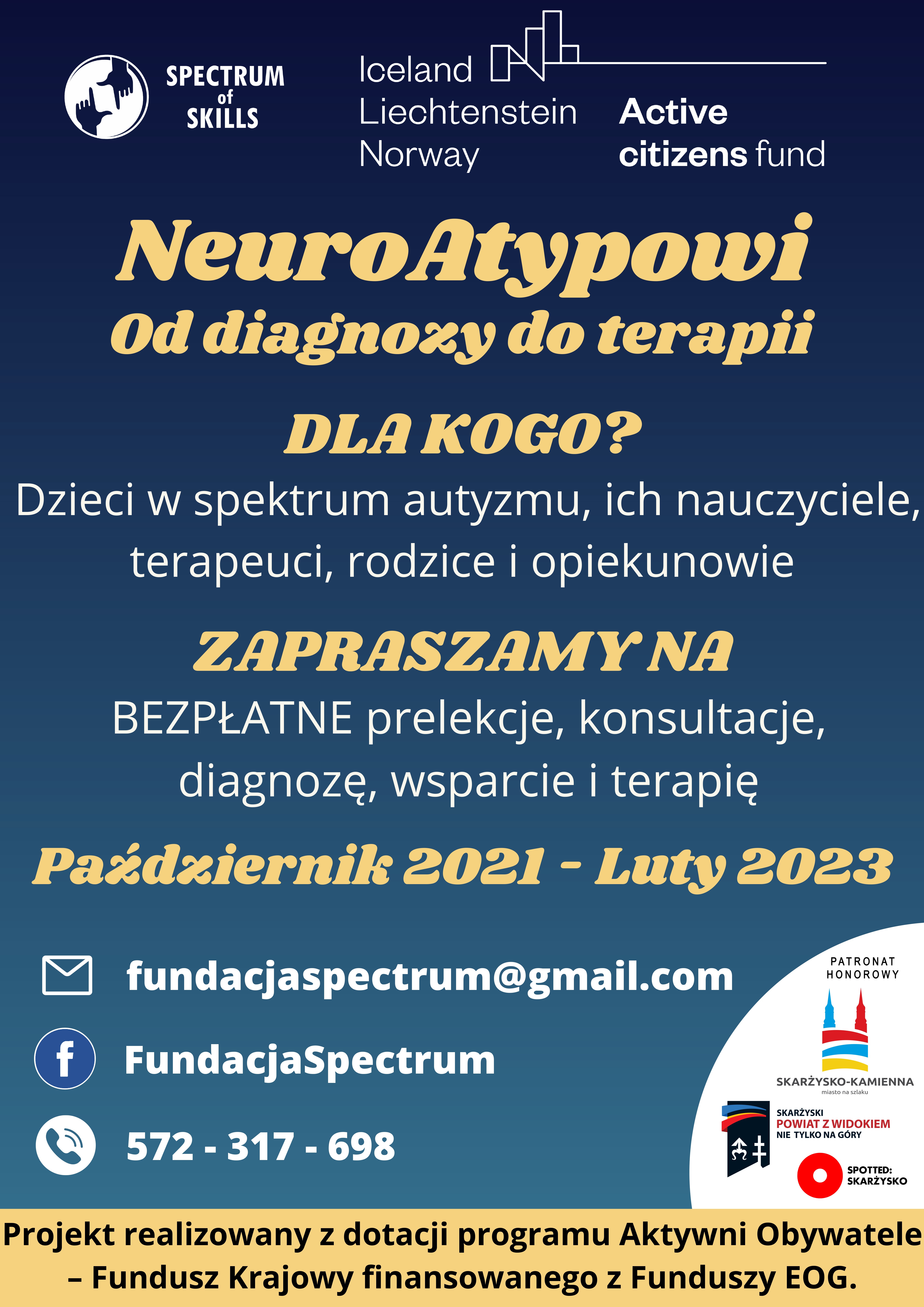 Wydarzenie odbędzie się w ramach programu "NeuroAtypowi od diagnozy do terapii” Fundacji Spectrum of Skills.