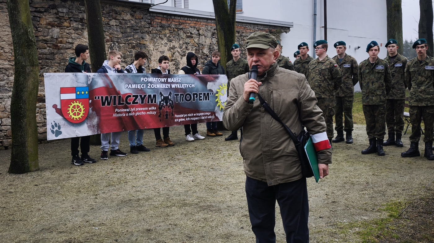 Czterokilometrowy marsz „Tropem Wilczym” konecka młodzież zakończyła przy budynku Zespołu Szkół Ponadpodstawowych nr 1 w Końskich.