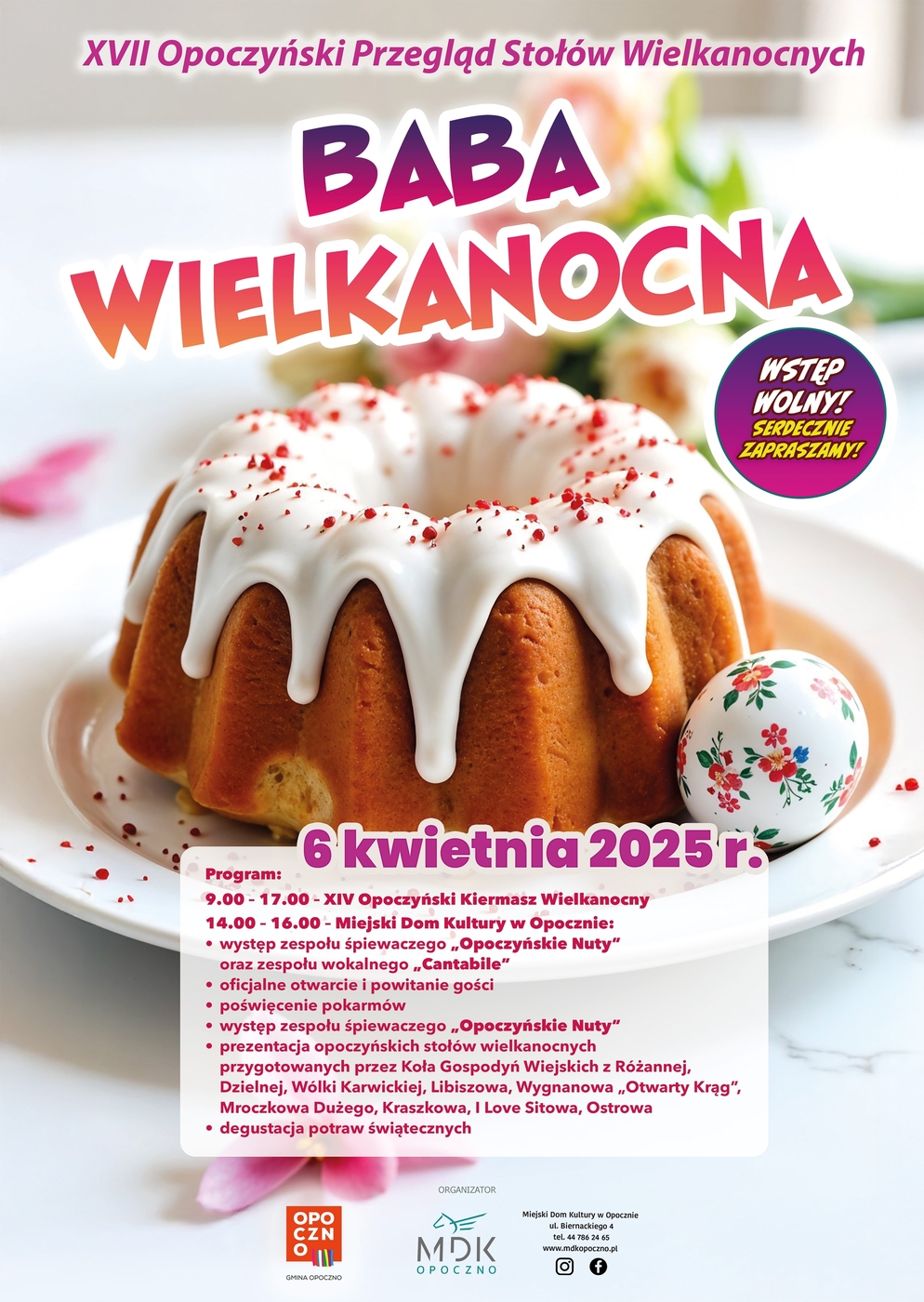 Będzie to już 17. edycja przeglądu, który w Miejskim Domu Kultury w Opocznie przeprowadzony zostanie pod nazwą „Baba Wielkanocna”. – Nazwa nawiązuje oczywiście do tradycyjnych babek wielkanocnych, które były pieczone w regionie opoczyńskim – wyjaśnia Zdzisław Miękus, dyrektor placówki.