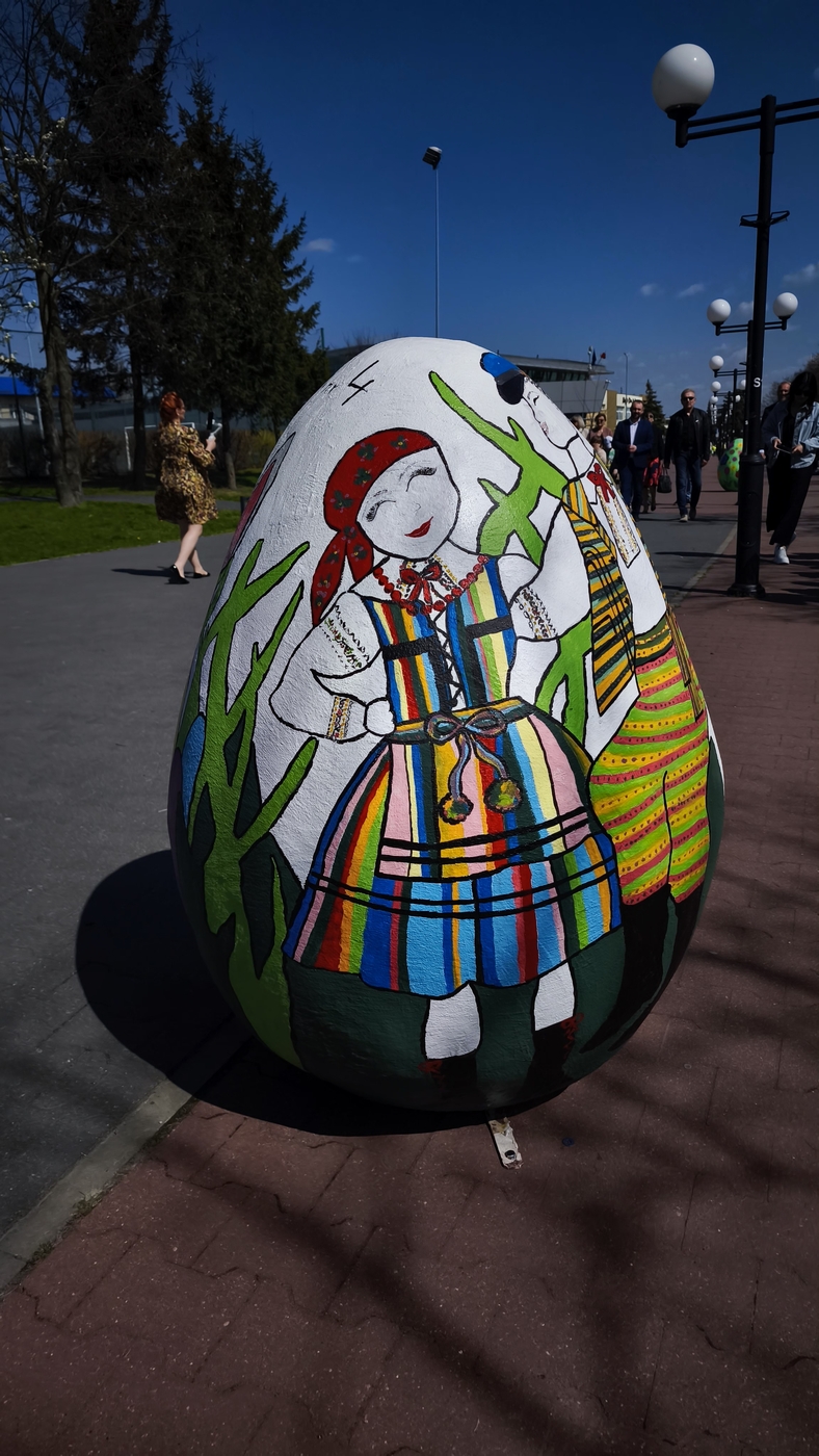 Ustawione wzdłuż ulicy Biernackiego duże pisanki budzą spore zainteresowanie mieszkańców.