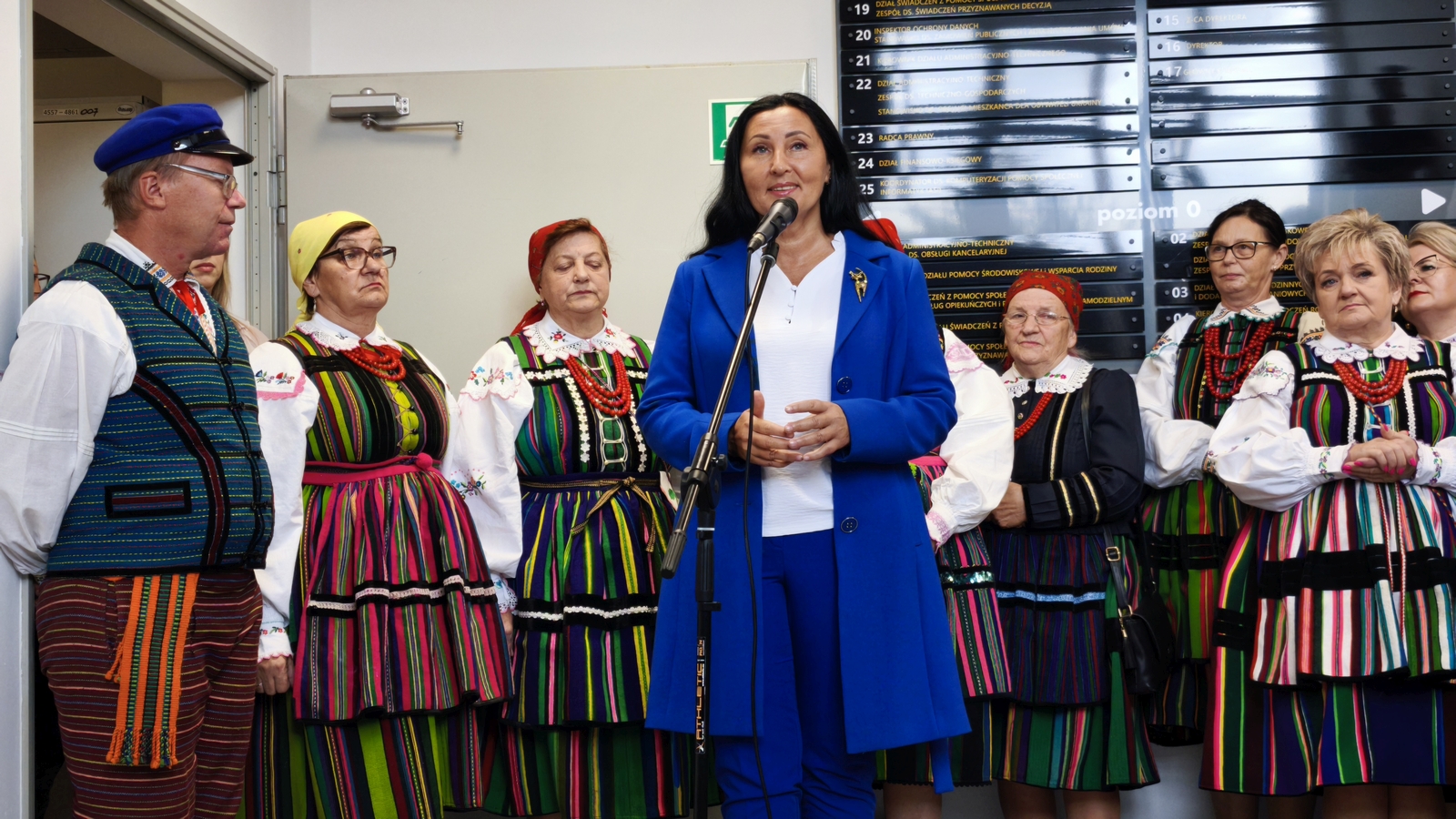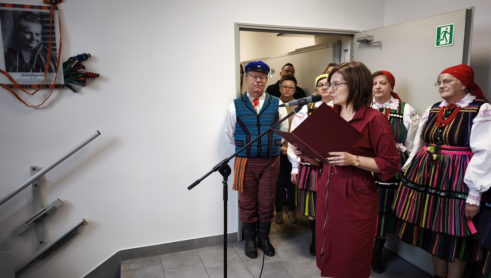 Pamiątkowa tablica poświęcona Janinie Smykowskiej odsłonięta została w budynku przy ul. Mickiewicza. To nie jest przypadkowe miejsce, podkreśla burmistrz Opoczna Michał Konecki. Jak przypomina, to właśnie tu swoją siedzibę miała przed laty „Opocznianka”.