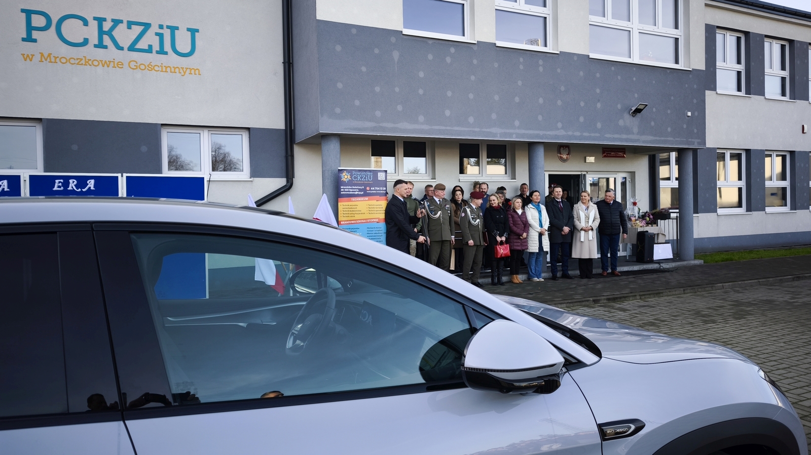 Uczniowie Powiatowego Centrum Kształcenia Zawodowego i Ustawicznego w Mroczkowie Gościnnym mają powody do radości. Do ich szkoły trafił nowy samochód elektryczny. Młodzieży posłuży on do nauki, podobnie jak otwarta w szkole pracownia elektromobilności. Kluczyki do samochodu elektrycznego z rąk starosty Marcina Baranowskiego odebrał dyrektor szkoły Damian Pietrasik. Jak wyjaśnia, nowy zakup oraz otwarta pracownia posłużą w szkole do nauki w zawodzie technik elektromobilności.