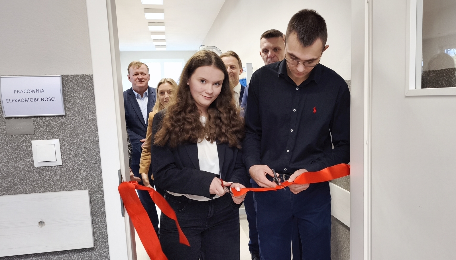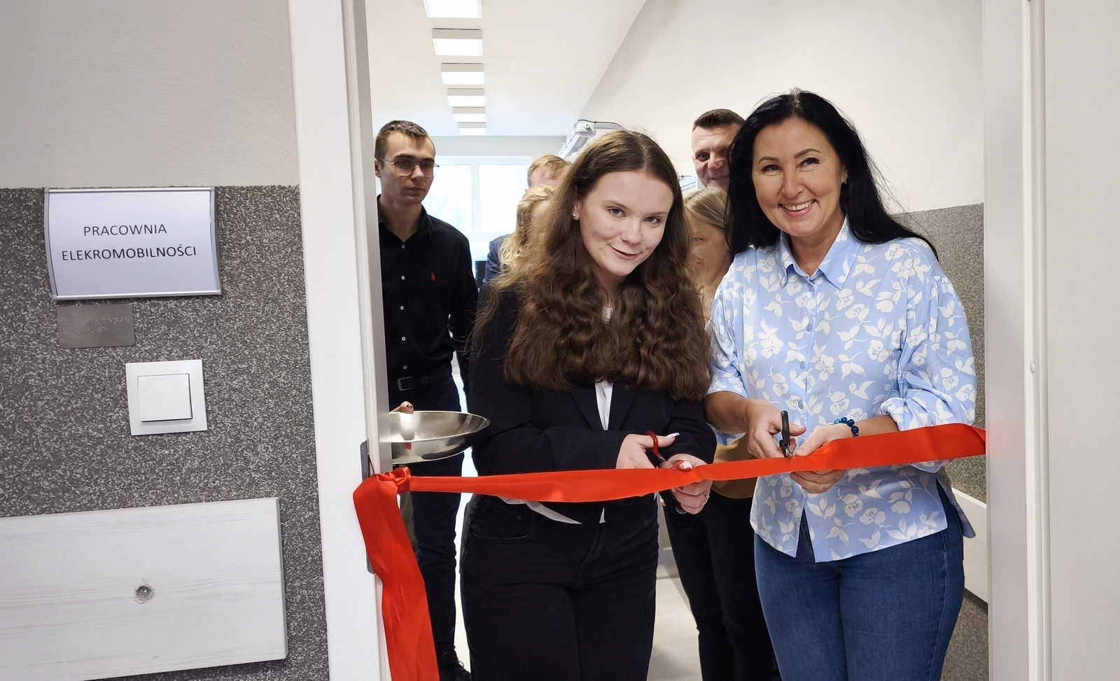 Młodzież miała okazję zapoznać się z nowym wyposażeniem pracowni oraz obejrzeć stojący przed szkołą samochód elektryczny.