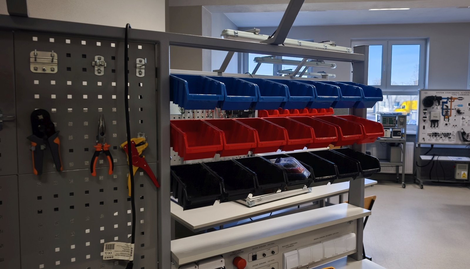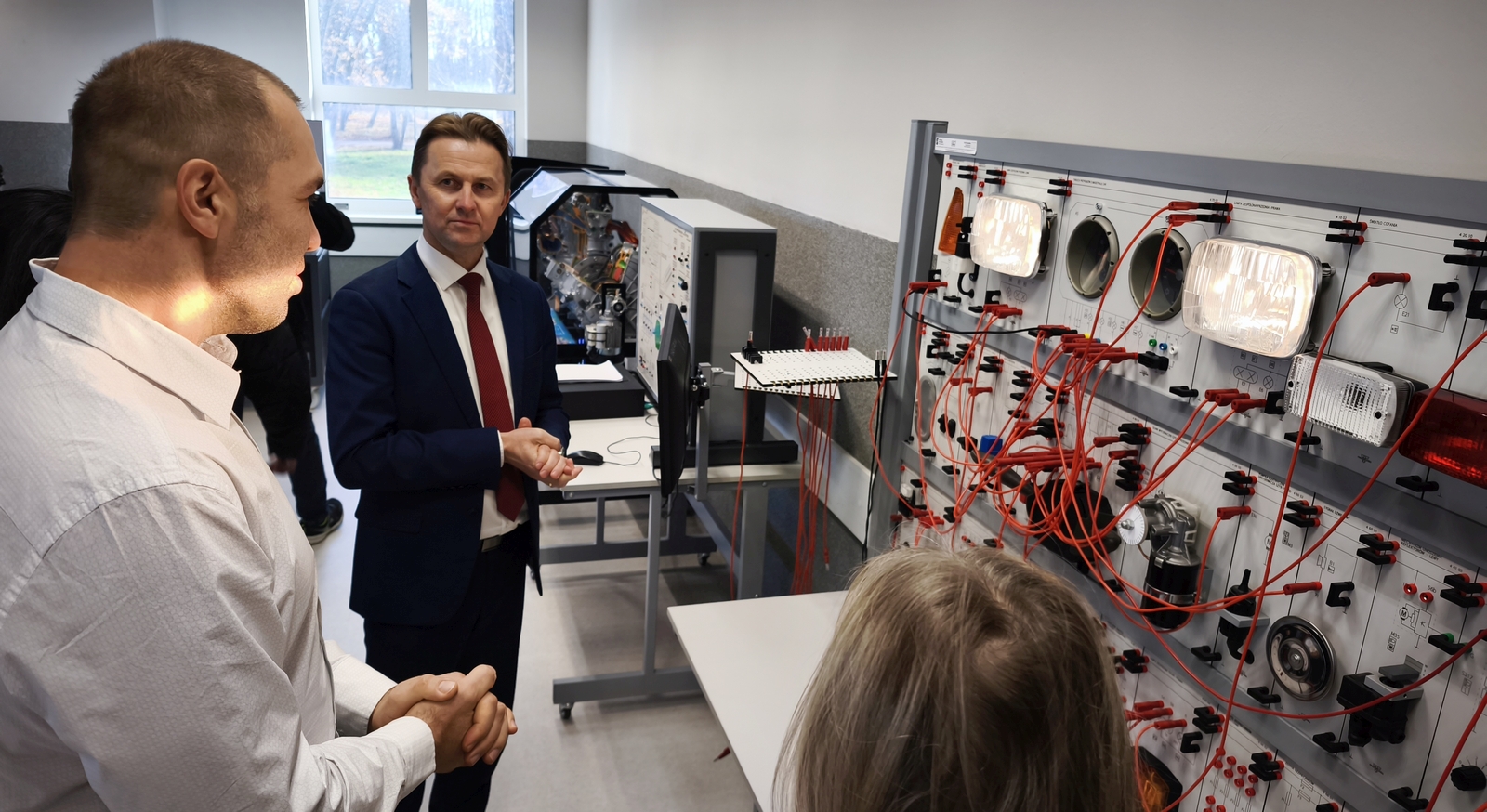 Wiesław Sołtysiak, kierownik warsztatów, wyjaśnia, że do szkoły trafi jeszcze ładowarka do samochodu elektrycznego oraz frezarka, tokarnia, kabina lakiernicza i linia diagnostyczna.