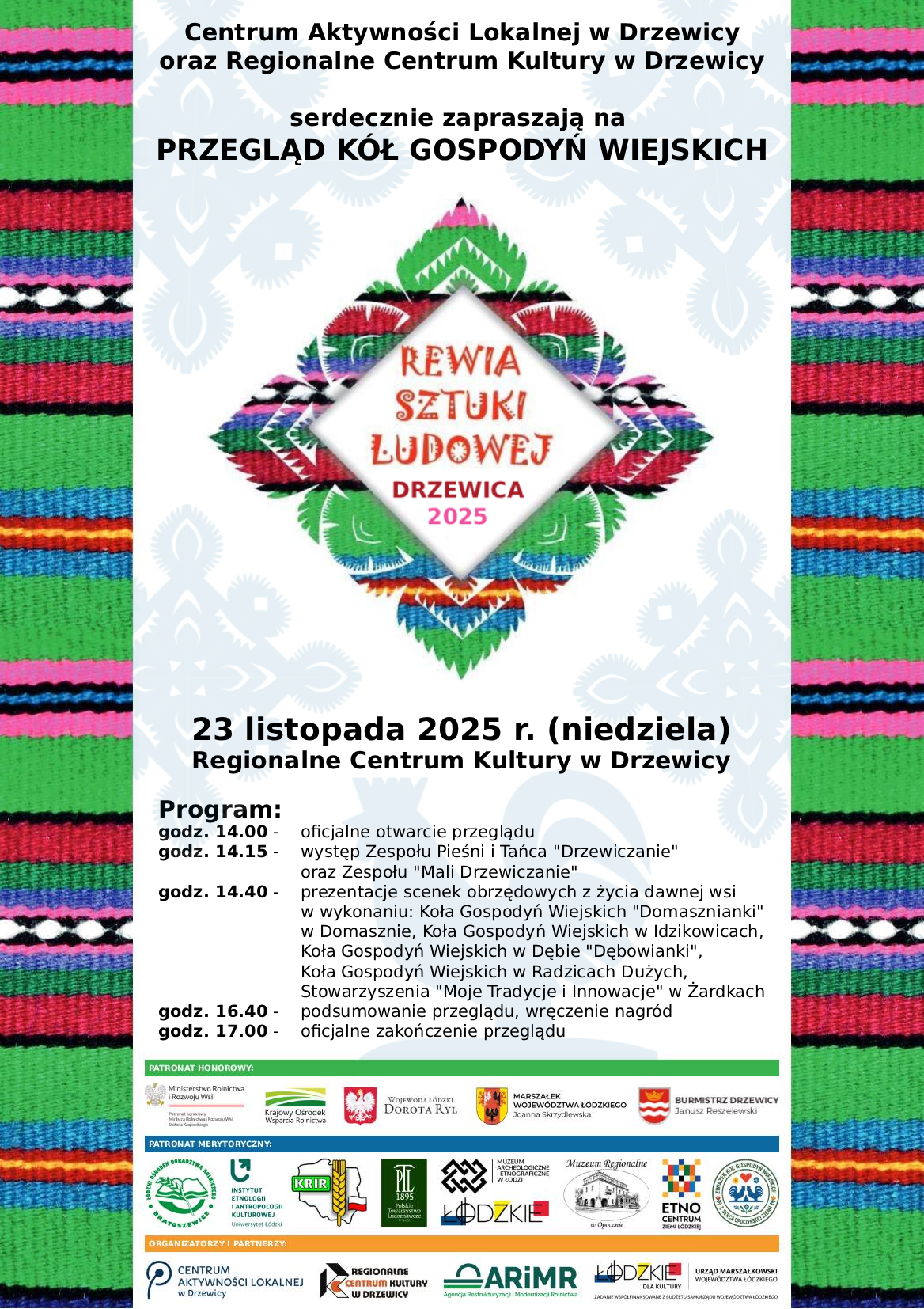 Rewia Sztuki Ludowej zorganizowana zostanie w Regionalnym Centrum Kultury w Drzewicy w najbliższą niedzielę (23 listopada). Początek wydarzenia o godzinie 14. Wstęp wolny.