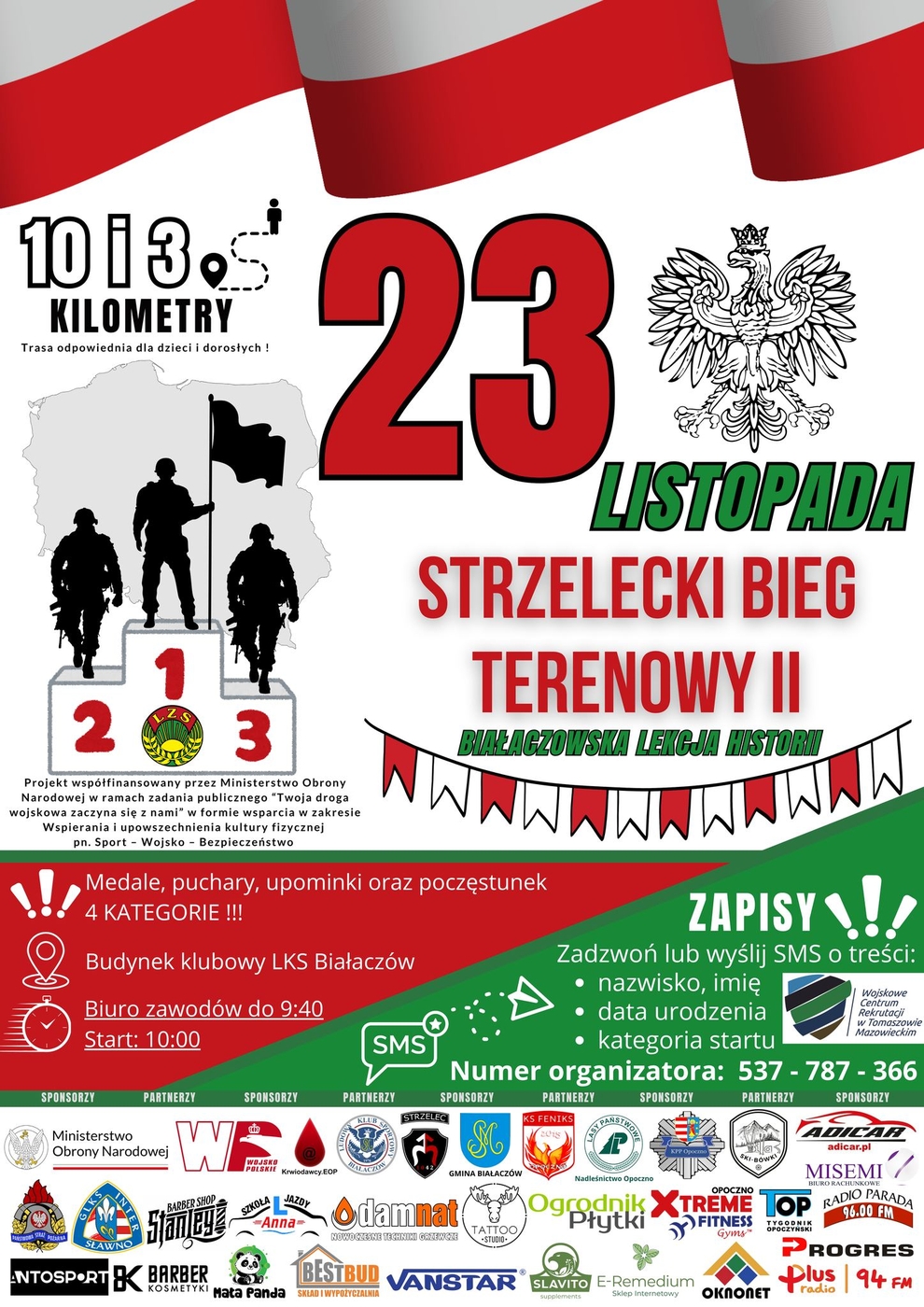 Strzelecki Bieg Terenowy odbędzie się w niedzielę (23 listopada) w Białaczowie. Jego uczestnicy będą mieli do pokonania jedną z dwóch tras: 10- lub 3-kilometrową, informuje Patryk Zalewski, z jednostki strzeleckiej w Opocznie. Jak wyjaśnia, jak na terenowy bieg przystało, na trasie czekać będą na biegaczy specjalnie przygotowane przeszkody.