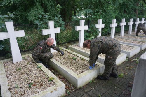 W strugach deszczu sprzątali mogiły